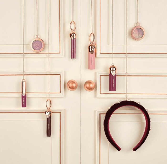La limited edition natalizia di Catrice punta tutto su texture sensoriali, finish luminosi e accessori raffinati. L’ombretto bicolore Glazing Fa-la-la-luminesce abbina due colori: il rosa e il burgundy e ha una delicata luminosità sheer. I rossetti liquidi Glazing Lip Color sono elastici e avvolgenti sulle labbra, a lunga tenuta; due le nuance entrambe dal finish sheer: rosa berry e viola melanzana. Il balsamo labbra Jingle Balm unisce idratazione e colore, per labbra più rosate e piene. Utilizzabile anche come top coat glossy successivamente al rossetto. Il blush liquido dal colore intenso e sfumabile è in due nuances, con finish opaco e intensità modulabile: Blushin’ Through the Snow, rosa baby e Wine Not, rosso-violaceo. Lo stick glitterato dorato Sleigh All Day! dalla texture in gel regala immediatamente luminosità e freschezza, risultando piacevolmente scorrevole sulla pelle. Accessorio il cerchietto in velluto borgogna con gioielli e perline.