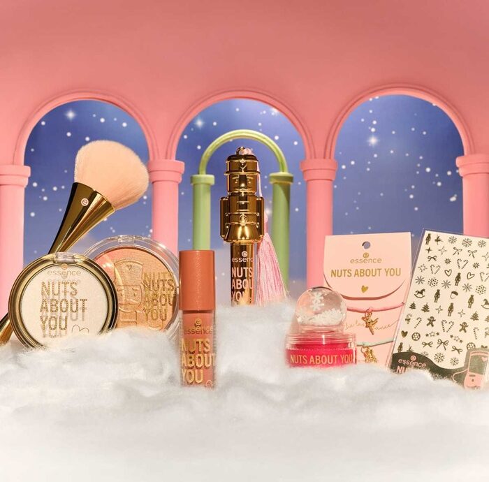La collezione Natale 2025 di Essence è ispirata alla fiaba dello Schiaccianoci. Il rossetto liquido Glitter Switch Kiss Me Prince rosa malva con micro glitter dorati è elastico e morbido sulle labbra, mentre l’applicatore a freccia è studiato per rilasciare la giusta quantità di prodotto. What’s Crackin’ è uno stick trasparente shimmer che illumina le labbra arricchito con olio di argan e olio di jojoba ad azione nutriente e idratante. Pirouette of Hazelnuts dal colore rosso e delicato, unito alla formula con burro di karité e oli naturali, nutre e leviga le labbra. Ballerina Glow è il blush-illuminante multicolore e multifinish, che colora e illumina la pelle in un solo gesto. Per sfoggiare una pelle luminosa Sugar Plum Fairy’s Dust è l’illuminante compatto dalla texture setosa e impalpabile che illumina viso e corpo con bagliori color ghiaccio. E per unghie perfette ci sono gli adesivi Totally Nuts About You, che si applicano con facilità sulle unghie e per sigillarli basta uno strato di smalto top coat.