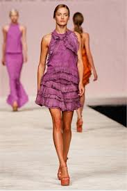 Gucci adotta le tonalità vitaminiche nei suoi abiti, abbelliti da un altro must di stagione i volant, applicati a gonne, magliette ed abiti, donandogli un che di leggerezza e di femminilità. Lo si trova sull’abito rosso fragola stretto in vita e sopra il ginocchio, o su quello arancio lungo fino ai piedi o ancora sul miniabito blu mora.