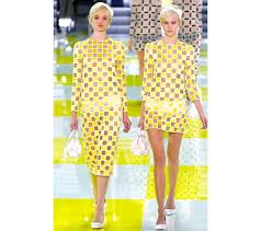 Molti gli stilisti che inneggiano al colore, a partire da Louis Vuitton, che si ispira ad un limoneto in Sicilia e tinge di verde e giallo, pantaloni, abiti e tailleur scegliendo fantasie a quadri.