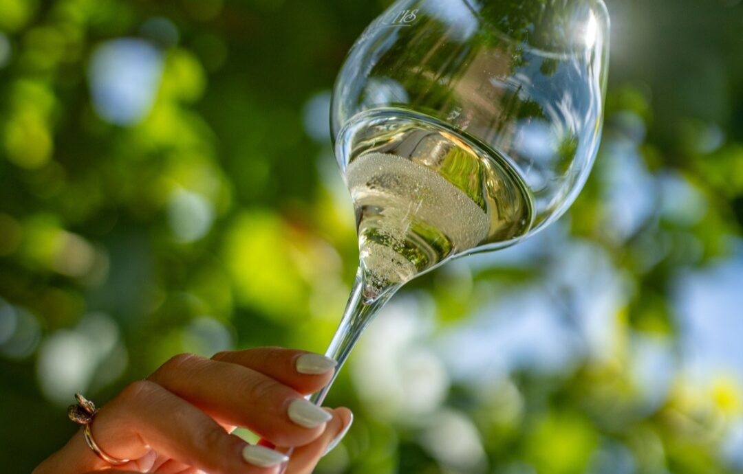 Dal calice emerge un bouquet che intreccia note di agrumi freschi con sentori più avvolgenti di vaniglia, pan brioches e frutta secca tostata.