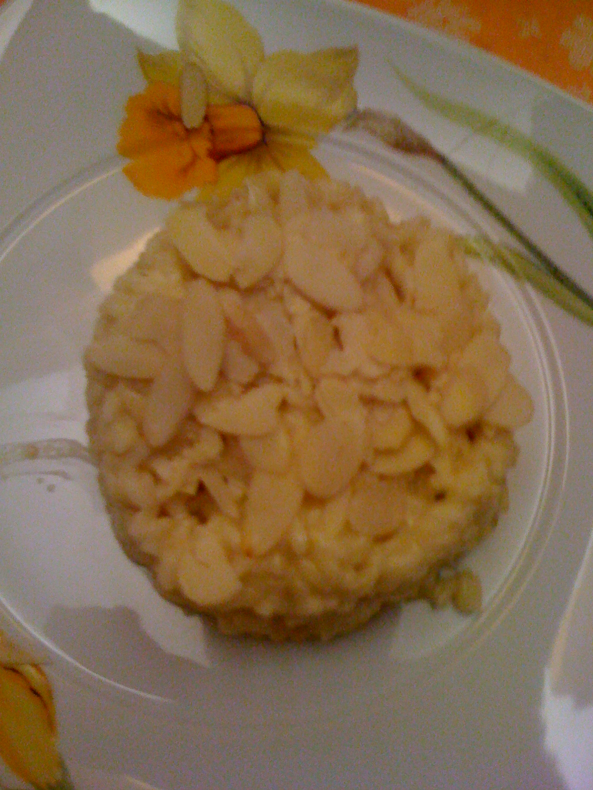 – Servire nel piatto col coppapasta ricoprendo la formina con le lamelle di mandorla.