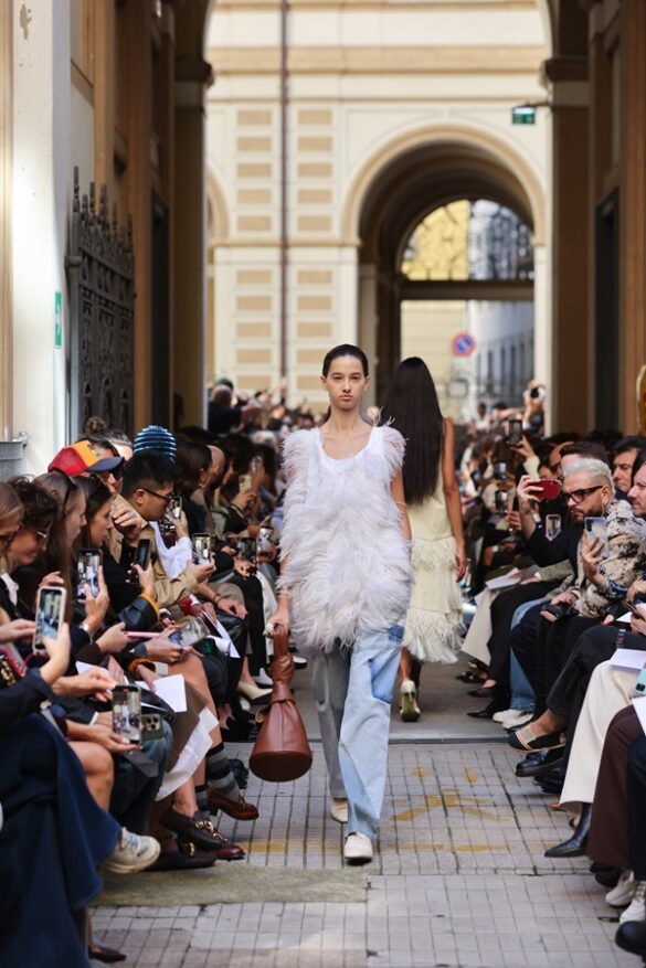 Calcaterra celebra i suoi 10 anni sulla scena della moda, e lo fa concentrandosi sull’essenza, sulla materia e su una donna forte, ma soprattutto mai rigida.